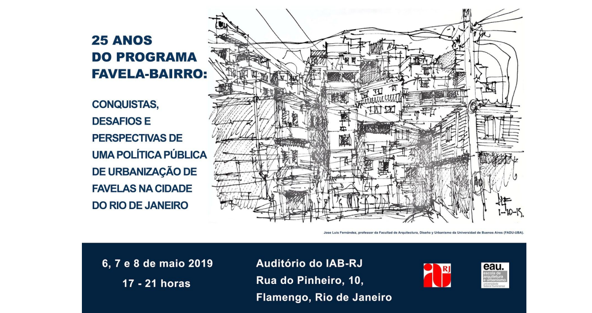 O seminário 25 anos do Favela Bairro, realizado entre os dias 06 a 08 de maio de 2019, foi uma iniciativa do Instituto dos Arquitetos do Brasil – IAB e contou com a participação de integrantes do Núcleo de Estudos e Projetos da Cidade – CENTRAL: Maria Alice Rezende de Carvalho e Marcelo Burgos.